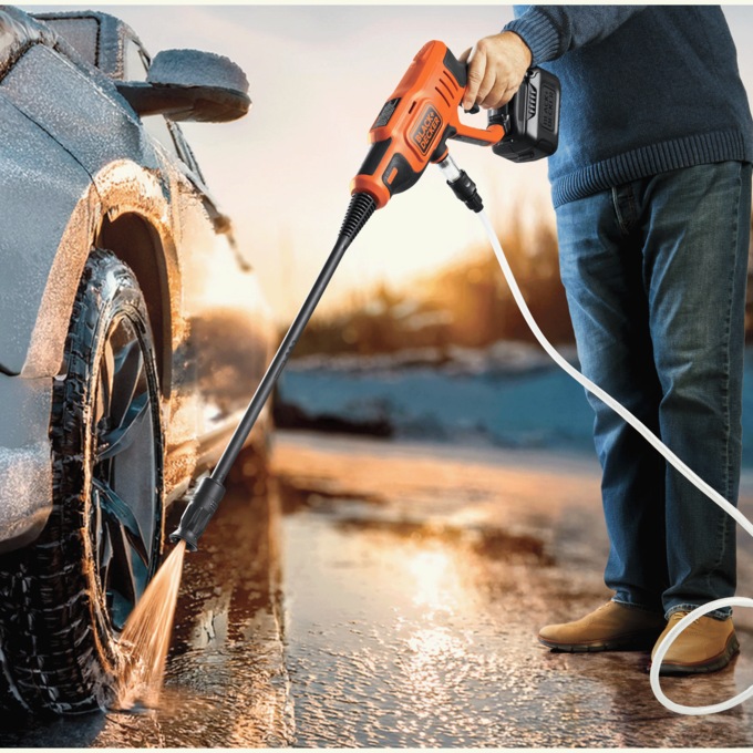 Convenient and portable, this power cleaner has 5 times the pressure of a garden hose with up to 350 MAX PSI in a compact package. Connect it to your garden hose or draw water from a water-filled sink or bucket or any freshwater source, including lakes and rivers, for a truly portable cleaning solution. The integrated adjustable nozzle provides various water streams so you can tackle a variety of tasks inside and outside the house, as well as on the go. Wash your car and spray clean your windows, deck, driveway, and garage. Clean your grill, patio furniture and outdoor play equipment. On your next adventure, use the Power Cleaner to spray mud off the tires of your bike and debris off your kayak before loading it up, or store it on board your boat to keep the exterior and decking clean and well maintained. Switch to the included short watering wand and you can even water delicate flowers. Includes suction hose, water hose connector, 20V battery and charger. 12.75" l x 4" w x 17" h; spray wand is 24.5" l.